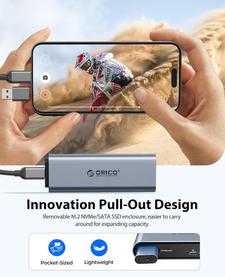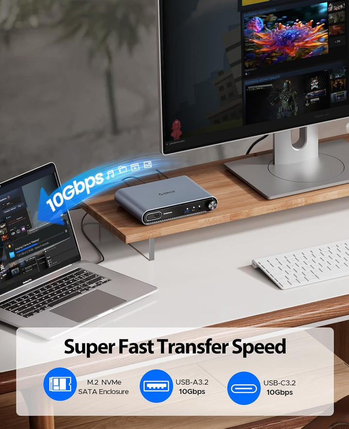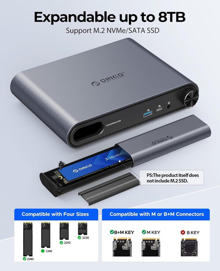 ORICO USB C Hub with M.2 SSD Enclosure, 10 in 1 Docking Station Fits M.2 NVMe/SATA SSD, 10Gbps USB 3.2, 4K@60Hz HDMI, 100W PD, Ethernet, 3.5mm Audio Jack (PTM1)